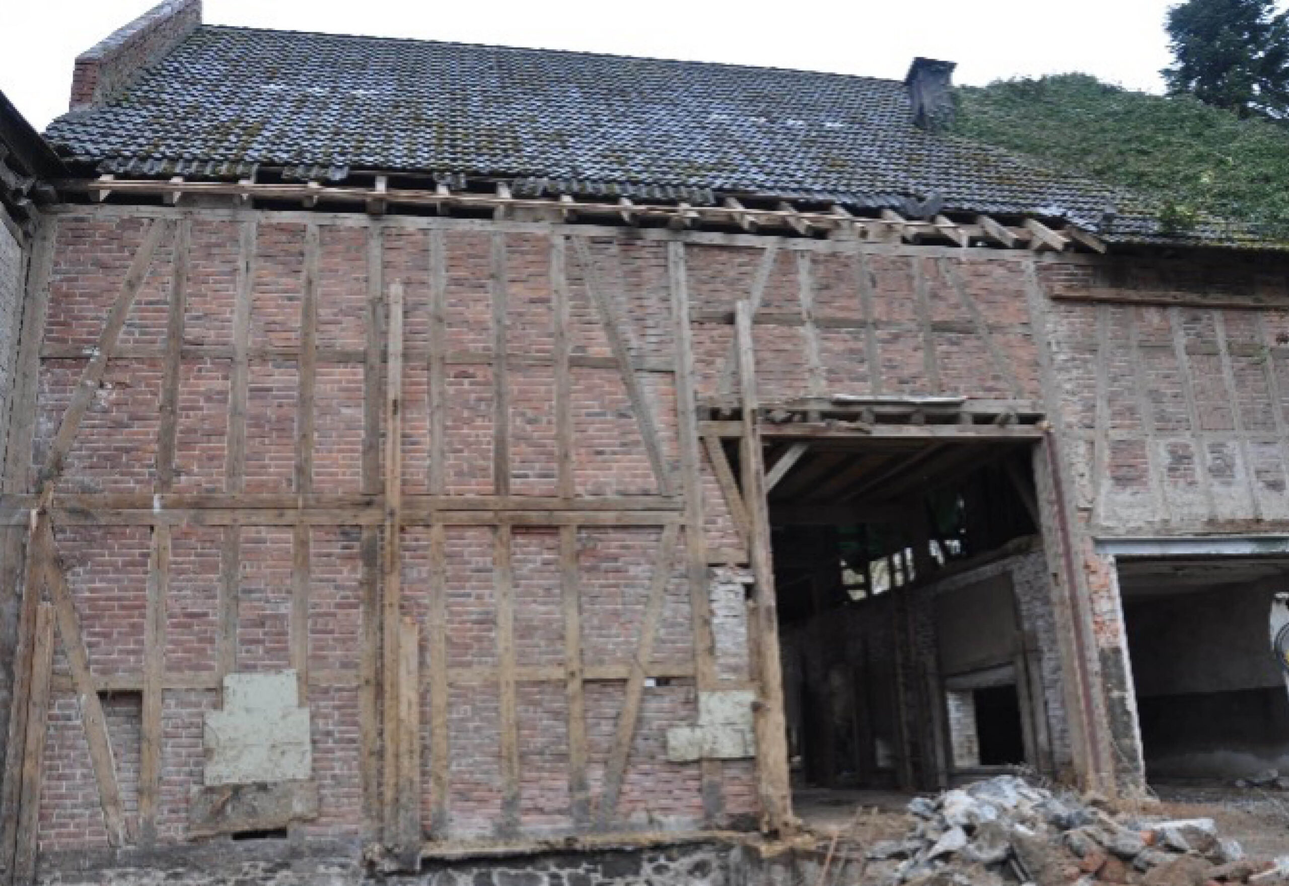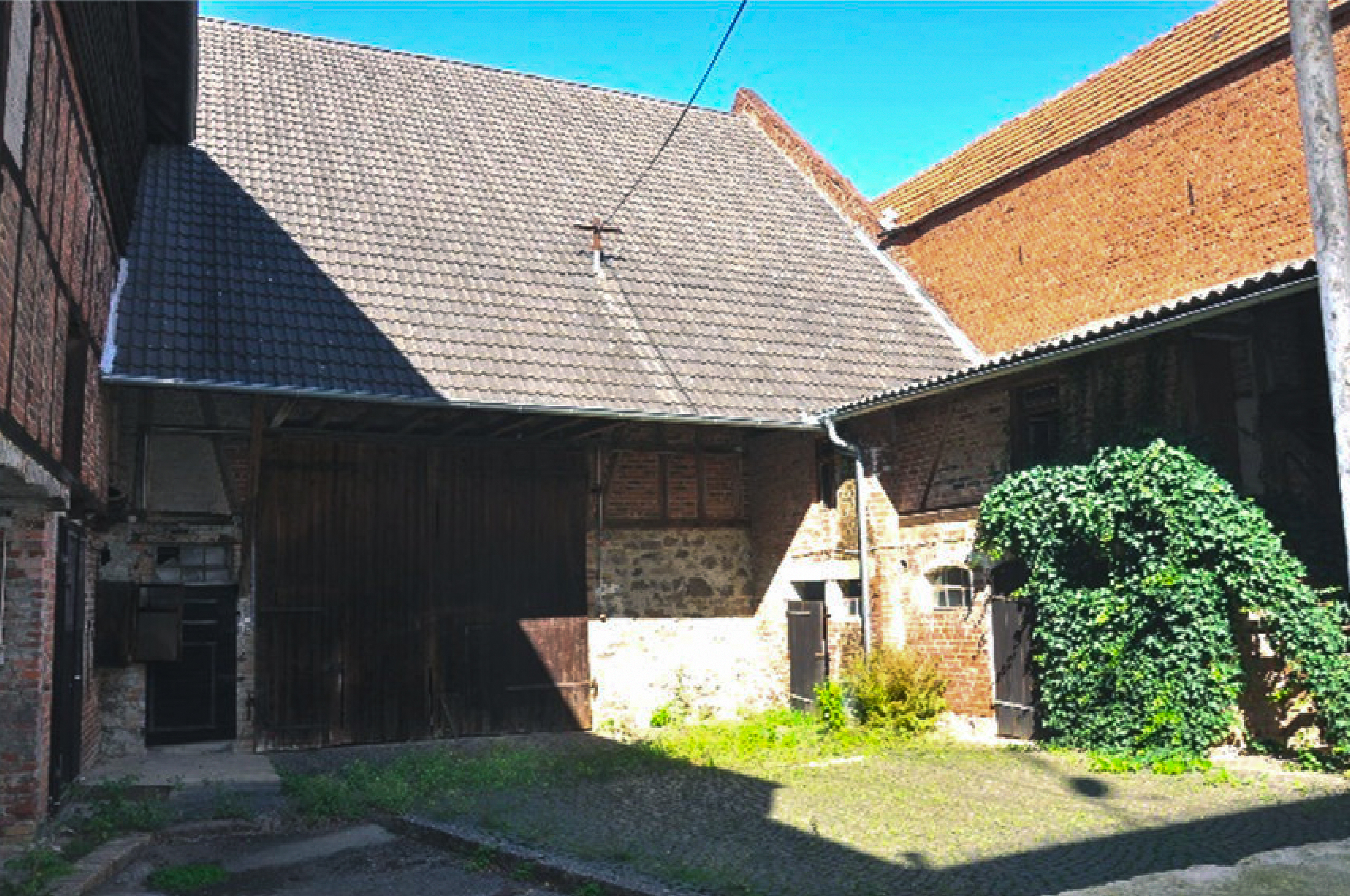 - Freistellung des ursprünglichen Scheunengebäudes durch Abbruch der hinteren Anbauten und der seitlichen Bauteile im Hof um eine ausreichende Belichtung herzustellen.